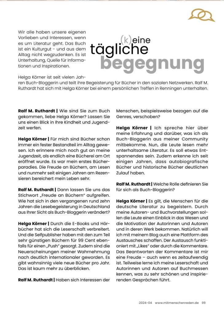 Mein Interview mit Herrn Ralf M. Ruthardt in der Zeitschrift Mitmenschenreden im Magazin 04/2024