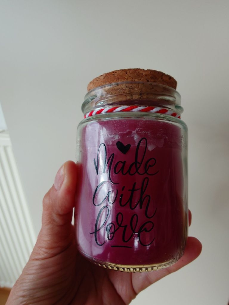 Dann gab es noch eine selbstgemachte Kerze von meiner Tochter und ihrem Freund.